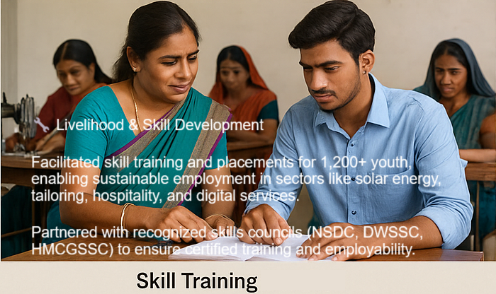 Equipping individuals with practical skills through vocational training, entrepreneurship support, and employment-linked programs to enhance income generation and self-reliance.